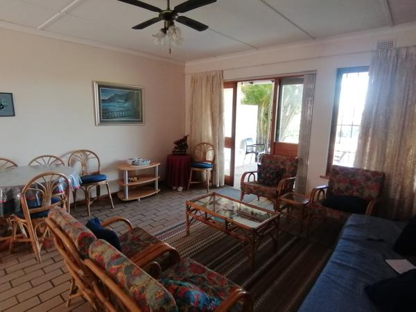 The unit consists of 2 bedrooms, 1 bathroom with bath, basin, shower and separate guest toilet with basin. It has an open plan kitchen and living area with a small breakfast nook. The living area opens up on to a veranda with a built-in braai. The veranda overlooks the pool area. The beauty of this unit is that there are no units in front of it, given you a wide-open space from the veranda.