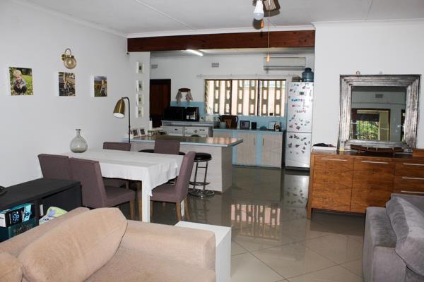 This inviting 4-bedroom, 2-bathroom residence is nestled in the tranquil coastal suburb of Leisure Bay, Port Edward, South Africa. Boasting a generous Floor Size of 240.00 sqm on an 1180.00 sqm Erf, this home offers an open-plan layout designed for comfortable living. The spacious lounge, dining area, and kitchen seamlessly connect, featuring durable tiled flooring throughout and enhanced by ample natural light. The functional kitchen includes an integrated island with bar seating, extensive cabinetry, and an air conditioning unit for climate control.