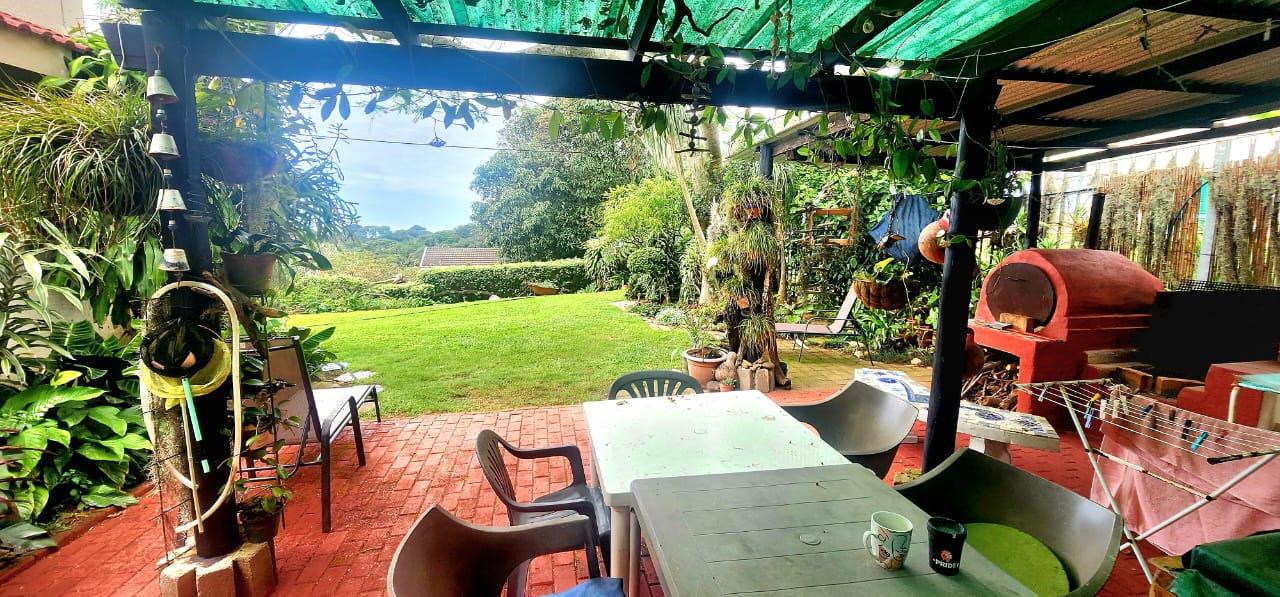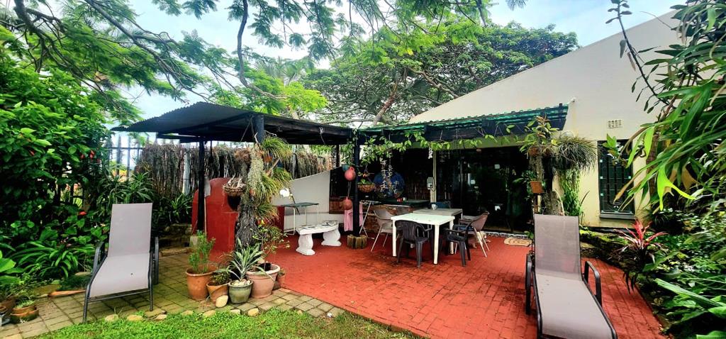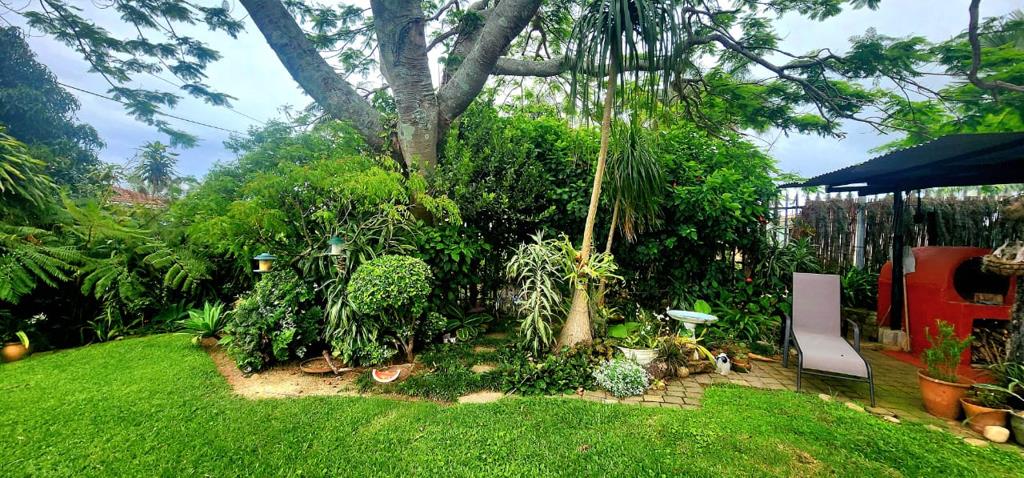 Situated in a quiet and serene area of Leisure Bay, a nature conservancy, a short distance to one of the most amazing beaches on the South Coast, Kidds Beach. A double garage and carport welcome you, enter through a palisade gate, up a paved pathway, lined with tropical gardens and interesting features, to a grassed area onto the front covered patio, the perfect spot to chill with the early morning coffee. Enter into the open plan lounge, dining area, with doors opening to the back covered patio area with ocean view, braai and jacuzzi. a lovely galley kitchen with granite tops and breakfast bar. The main bedroom is large and has plenty of cupboard space and a full ensuite bathroom. There is a door leading to the rest of the home, this can be closed to form an attached flat, which consists of a kitchenette, bathroom, 2 bedroom and a lounge area, which also opens to the front patio, so can be completely self contained, should one want to generate extra income, or just open it to the rest of the house, this will allow for office space and an extra lounge or 4th bedroom. Some of the windows have amazing stained glass art, an added sought after feature. In the stunning gardens is a water storage tank, a fish pond, intimate seating areas and an outside shower. Security is taken care of with alarm, burglar guards, and beams. Overall, a stunning coastal sanctuary, with tons of character, well worth a viewing!