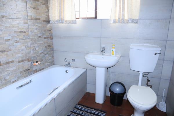 Accommodation comprises three well-proportioned bedrooms, each offering a comfortable retreat. The two bathrooms are functional, featuring a bathtub and essential facilities, with one showcasing an accent tiled wall. Natural light streams into the bedrooms through large windows, creating bright and airy spaces.