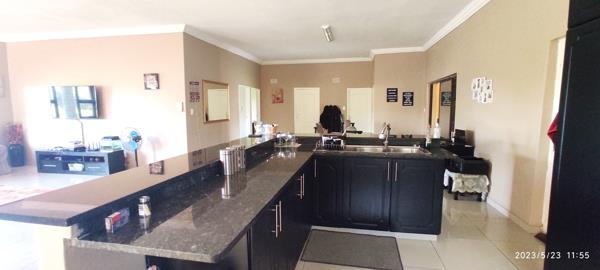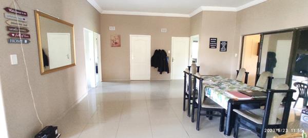 There are three big bedrooms and the master bedroom is on-suite with a lovely new bathroom. All bedrooms have built-in cupboards. A lovely guest bathroom serve the other three bedrooms. The fourth bedroom is large and on the corner of the house with doors into the braai room. There are two small rooms, (2x2m each) currently used for storing going out from this bedroom and would be perfect to change into another full bathroom - This room is big and can very easily be changed into another full one bedroom unit with its own entrance, or just use it as is for a fourth bedroom. So much possibilities. Another big one bedroom flatlet on the opposite corner of the house will be perfect for dual living, as this unit also has its own entrance, and are private from the main house area. Perfect for Granny and Grandad or your teenage children, or rent it out for extra income. Just add a kitchen or kitchenette - plenty space. Currently used as offices for owners business. Double garages finishes this property. There is an alarm system with outside beams, and a Camera system, but not connected, as it is a very safe area. A 5000L JOJO tank ensures back up water.