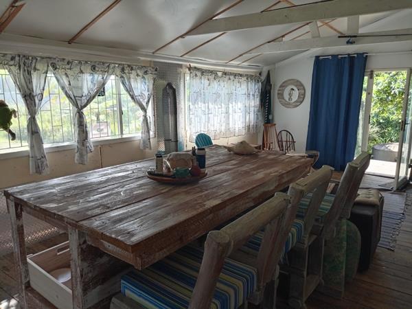 The wooden patio provides a lovely outdoor space to soak up the natural beauty of the property, while listening to sounds of the ocean.