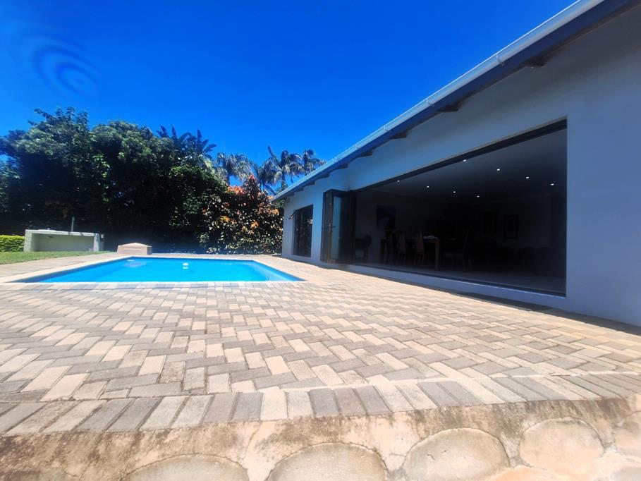 Sole Mandate. What a lovely home with magnificent large open plan living area including internal built in braai area flowing out onto the lush garden with spectacular pool overlooking the expansive Indian Ocean. All on one level this amazing and versatile property can be equally functional as a primary residence or holiday home.