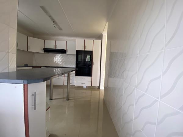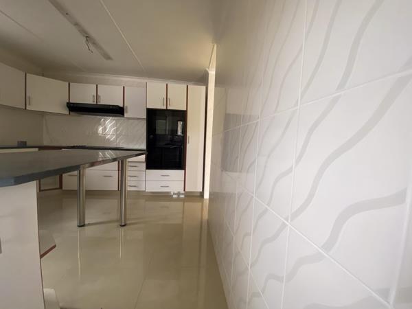 At the centre of the home is a modern kitchen complete with granite countertops, two ovens, a built-in stove, and a separate scullery. Its the ideal setup for anyone who enjoys cooking or entertaining. The kitchen flows naturally into the spacious lounge and dining room, creating a warm and welcoming space for gatherings.
