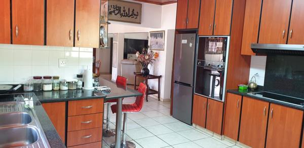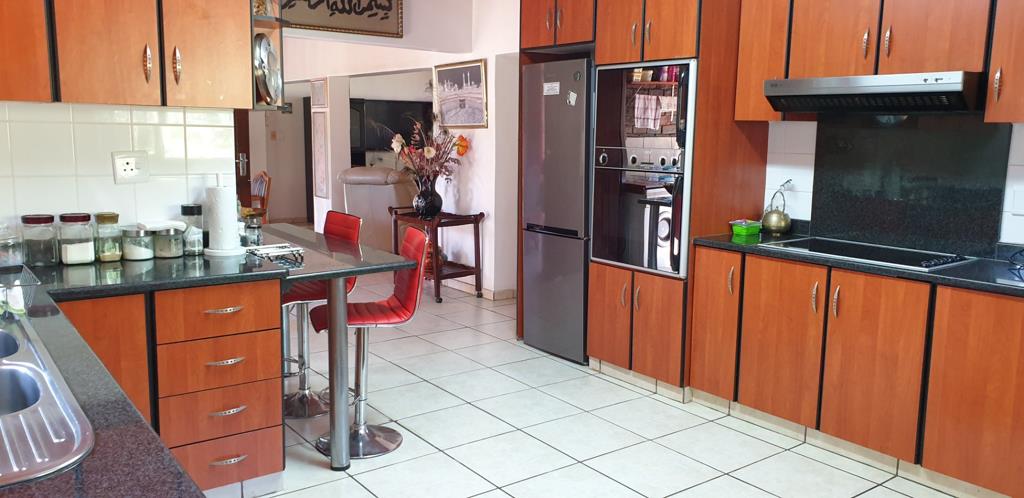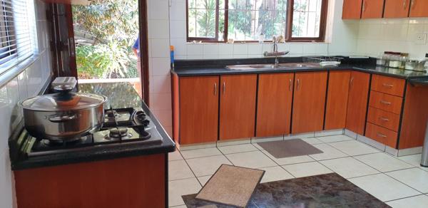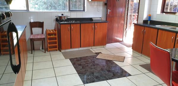 Gourmet Kitchen: The well-equipped kitchen features elegant cherry wood cupboards, a gas hob, double sink, separate scullery, and a walk-in pantry. This area extends into the dining room and out onto a spacious balcony, perfect for entertaining or family gatherings. In summer, you can enjoy the breeze by keeping the doors open, or create a cool indoor space with the air conditioning.