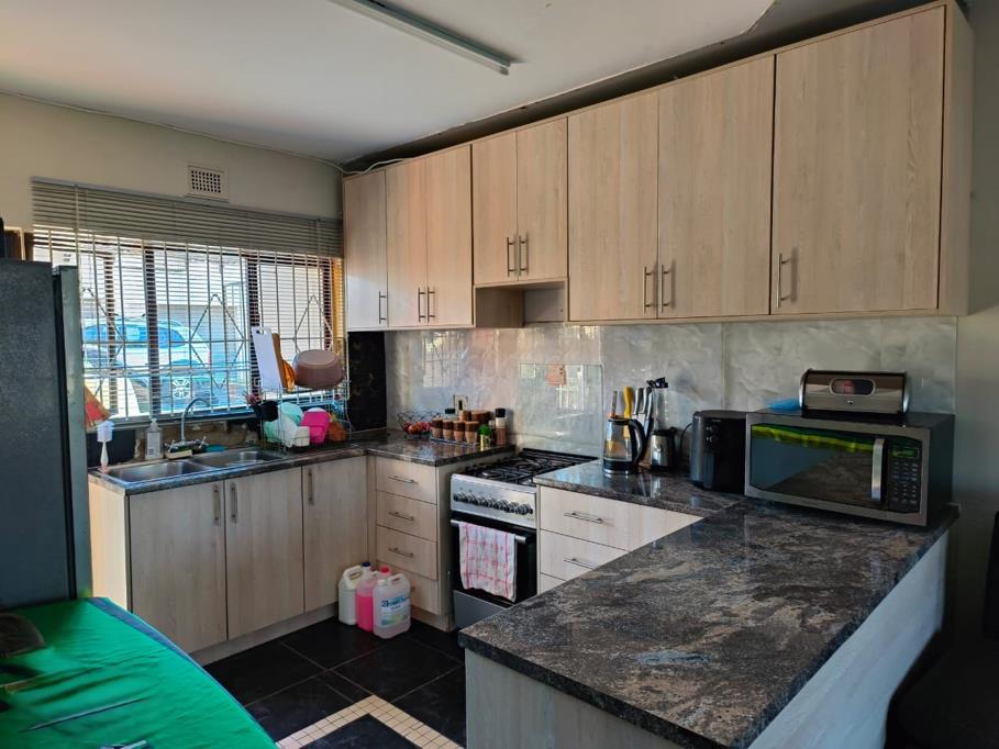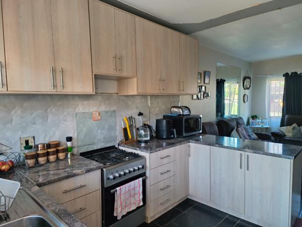 The flat is on the ground floor and has an open plan kitchen and lounge. The kitchen is fully fitted with built in cupboards. There are to spacious bedrooms and one bathroom. One of the two bedrooms has built in cupboards. The flat has one single lock up garage. This is also the only unit in the complex with a little courtyard.