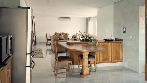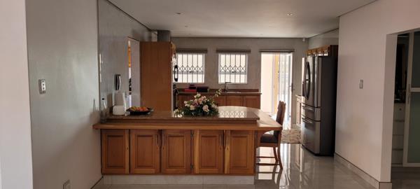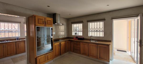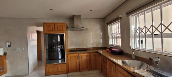 Situated in a peaceful and secure neighbourhood, this immaculate home offers the perfect balance of modern comfort, versatility, and investment value. Showcasing modern elegance with premium finishes in every detail .The residence features four spacious bedrooms with built-in cupboards, blinds, and air-conditioning, two of the bedrooms boast private en-suites, styled with sleek modern showers and elegant, high-end finishes for a touch of luxury. The flexible fourth bedroom, with its own private entrance, can be converted into a flatlet for rental income or utilized as an additional living space. A second lounge provides further versatility, while a third separate bathroom ensures added convenience for family and guests. The modern kitchen is equipped with granite countertops, a hob, extractor fan, eye-level double oven, and is complemented by a separate scullery with double sinks and a walk-in pantry, leading to the backyard with a 10,000-litre JoJo tank and pump system. Additional features include a dedicated office with built-in cupboards and air-conditioning, a laundry room that can also serve as a gym or storage space, elegant porcelain tiles, and stylish lighting throughout. A covered carport accommodates up to four vehicles, while staff ablution facilities and a beautifully maintained garden further enhance the property. For peace of mind, the home is fitted with top-class security including an alarm system, beams, Trellidor gates, burglar bars, and security gates. Adding to its value and sustainability, the property is fitted with 14 solar panels, included in the sale price, ensuring reduced energy costs and reliable power supply. Stylish, secure, and built for modern living, this home has it all. The perfect combination of lifestyle and investment awaits. Call us now to arrange a private viewing of this exceptional property.
