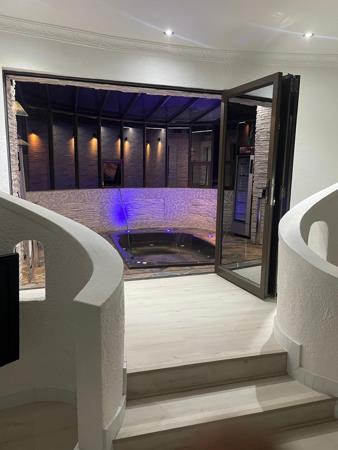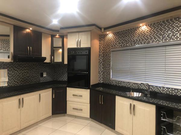 This beautiful and spacious three-bedroom family home offers the perfect blend of comfort, style, and functionality, and comes fully furnished for your convenience. The main bedroom is a luxurious en suite featuring an additional adjoining room with its own private door, ideal for use as a home office, nursery, or personal gym. All bedrooms include built-in cupboards and air conditioning for year-round comfort. The home features two modern bathrooms and a separate guest toilet for convenience. The lovely kitchen is designed with granite countertops, cupboard downlights, and a breakfast nook, with a door leading to the backyard. There are two lounges one large and one smaller providing plenty of space for relaxation, with the main lounge including an air conditioner, couches, and a TV setup. A bright and inviting sunroom flows seamlessly from the garage into the house, creating the perfect transition space for relaxation or entertaining guests. An indoor jacuzzi room seats up to eight people and has extra space for side tables or a small bar, complemented by special lighting to create a relaxing atmosphere. The property includes double automated garages with an inverter system, an electric gate, and full perimeter fencing for added security. Additional features include a Wendy house, JoJo tank, burglar bars, outdoor taps, a washing line, and a large driveway with ample parking space. The outdoor area is perfect for pets or storage and features a banana tree and a lychee tree for a natural touch. Sliding doors and one-way windows enhance both privacy and style, while a mirrored passage cupboard adds elegance and brightness to the interior. Conveniently located close to schools and shops, this fully furnished home is a perfect choice for families seeking a secure, comfortable, and inviting living space.