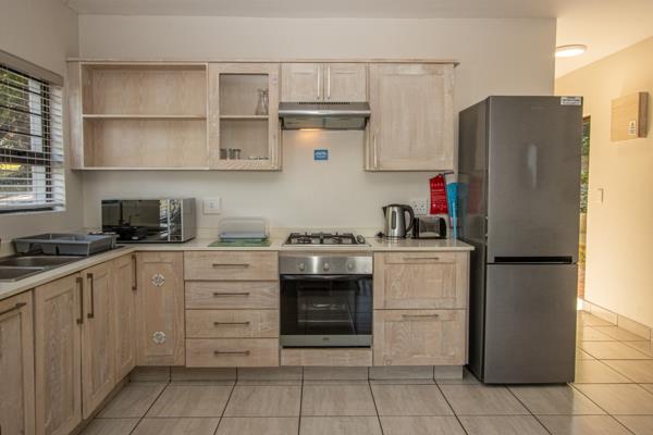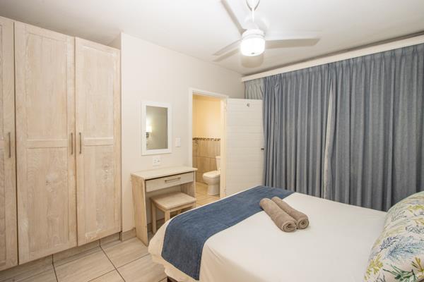 This corner unit sold fully furnished, making them ready to generate income. The unit size and architectural design are modern. The kitchen and bathrooms are all done the same and are modern. The unit consist of comfortable bedrooms, bathrooms, a lovely large open plan kitchen, lounge, and dining area. All bedrooms have beautiful built-in cupboards, with its built-in braai area on the patio.