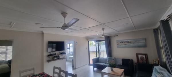 Inside, the open-plan lounge and dining area flow seamlessly onto a spacious patio complete with a built-in braai perfect for relaxed entertaining. The modern kitchen comes fully equipped and designed for both style and convenience. With two bathrooms and sleek tiling throughout, every detail says comfort and coastal cool.