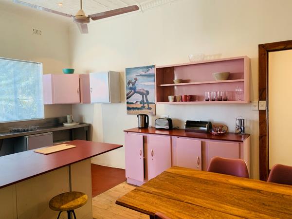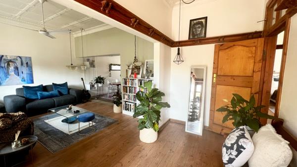 This awesome semidetached home with a creative flair offers a relaxed lifestyle in a funky environment. From the front porch a welcoming entrance hall leads to a fabulous lounge that flows to an L shaped open plan dining room off the lounge. A separate well-equipped funky kitchen with renovated retro metal cupboards an awesome quirky addition to the home. A gas stove and gas geyser to reduces electricity bills. From the kitchen is a small enclosed bask stoep that goes down stairs onto a private courtyard garden with big palm trees with other trees for shade. The entrance hall and kitchen both have doors into a passage with two enormous, beautiful bedrooms and a stunning passage bathroom. Feature wooden strip floors and metal pressed ceilings. Under the home is a large store room which with a bit of creative thinking could be added living space, home office or a store room and or laundry. A spacious room in the back garden at the end of the drive can easily be converted into an income generating cottage, a guest suite, a lovely space for extended family or a work from home office. A further toilet in the back garden for day staff. Prepaid electricity. Fiber ready home. Two car ports and two further off-street parking spaces.
