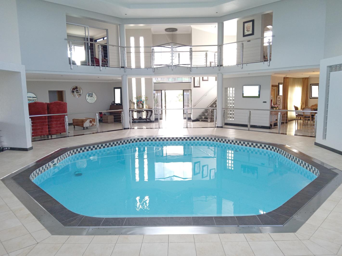 2 lounges downstairs, a modern kitchen and dining room. 4 of the 7 bedrooms have their own en-suite bathrooms and walk-in closets of which 2 bedrooms have private balconies overlooking the Indian ocean. There are 4 electric garages, an entrance hall fit for a KING! Exquisite lighting throughout as well as aircons fitted in every room