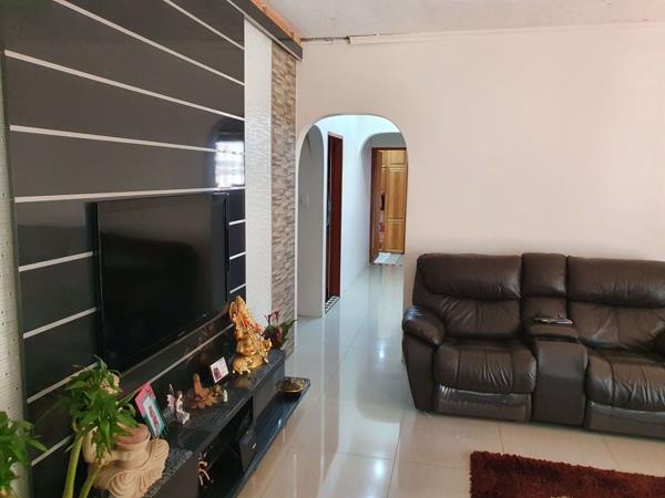 This is a 3 bedroom with 2 and a half bathrooms has one en-suite a communal bathroom and one separate toilet the lounge area as well has a feature on the wall with a dining room area and not forgetting the modern kitchen with granite tops with a lovely garden and even artificial grass in the front to give it that fresh look it has 2 water tanks with motors as well as a shed and not forgetting the double garage with a carport at the back