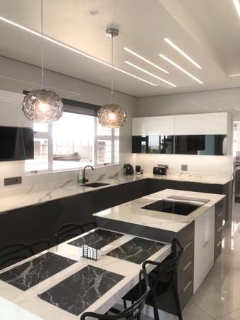 Discover unparalleled coastal luxury in this ultra-modern double-storey beachfront home, designed for both relaxation and entertaining. This exquisite residence features 4 out of five en-suite bedrooms, each equipped with air conditioning and built-in cupboards, ensuring comfort for every family member. The main bedroom is a stunning retreat, boasting a spacious walk-in closet and breathtaking sea views from its private balcony.