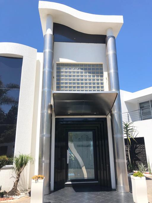 This property offers luxury at its finest, with a double automated garage and gate, secure parking, electric fencing, a comprehensive alarm and camera system, indoor and outdoor beams, and an intercom system. Additionally, staff quarters are available on the property.