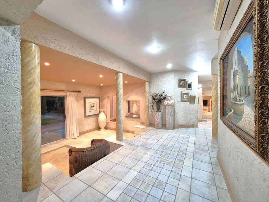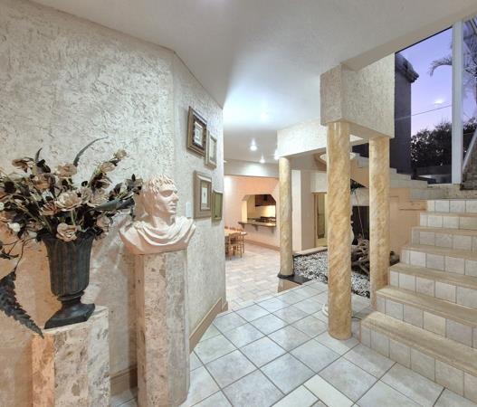 The fully fitted garden cottage features 3 en-suite bedrooms, an open-plan lounge and dining area, and a separate kitchen, perfect for extended family or guests. This property is secured with high perimeter walls, an alarm system and an automated designer gate. Additionally a laundry room, domestic quarters, storeroom, and a spacious 3-car garage complete this exquisite home...