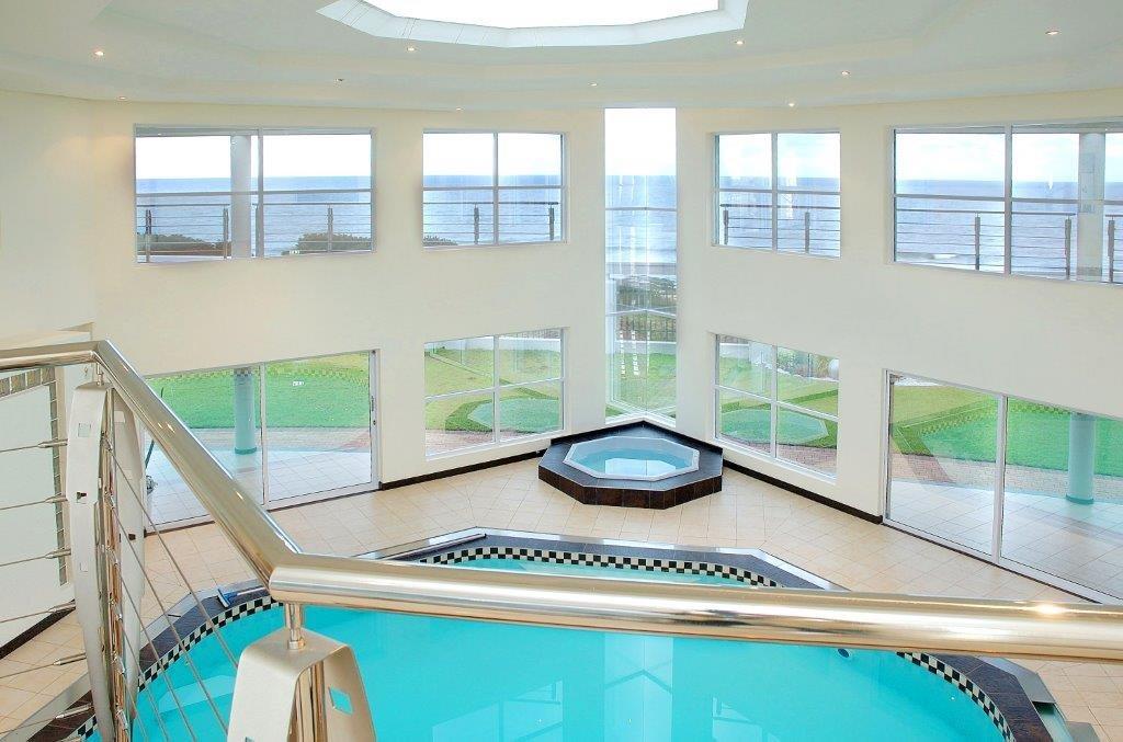 This 850 m2 home with manicured garden is situated on a large 3000 m2 walled stand with automated gated access. There are 5 large bedrooms all en-suite and with beautiful walk in closets, TV ports, air conditioners and to top it all unbelievable sea views! Home boasts an indoor octagon shaped swimming pool, Jacuzzi and a snooker table tennis table. The lounge, dinning room and large breakfast nook are open plan and look onto the pool area.