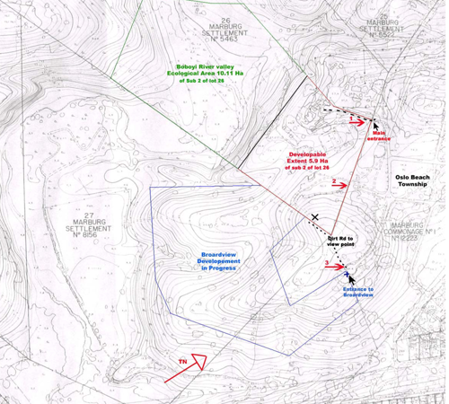 Of the total land area, approximately 5.9 hectares (59,000 square meters) has been identified as developable, with a gentle gradient of 1:7, making it suitable for immediate residential projects. The remaining 10 hectares (100,000 square meters) forms part of the Boboyi River Valley greenbelt, which can be integrated into the development for eco-friendly initiatives, set aside as leisure and recreation space, or retained as a natural conservation buffer. The altitude of the developable area ranges between 34 m and 73 m above sea level, offering excellent elevation for views and layout flexibility.