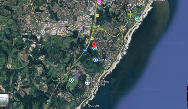 The land measures a total of 16.08 hectares (160,851 square meters / 39.74 acres) and is historically known as Cherry Farm, which formed part of one of the original Norwegian settler farms established in 1882. Ideally positioned on the Lower South Coast, the property is located just 3 km from the Port Shepstone CBD, making it both private and conveniently central.