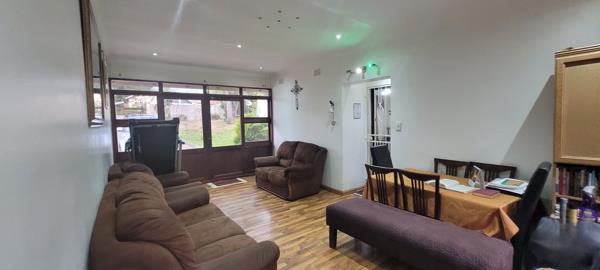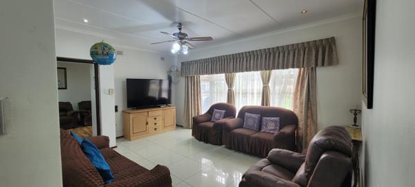 Through grand wooden sliding doors, you are welcomed into a versatile room with warm wooden flooring ideal as a second lounge, entertainment hub, or multi-purpose space. Flowing seamlessly beyond, the home opens into a bright, neatly tiled lounge, where charming bay windows fill the space with natural light.