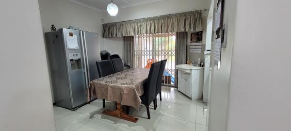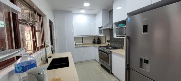 The open-plan dining room and renovated kitchen form the heart of this home. The kitchen impresses with sleek white granite countertops, ample built-in cupboards, and an extractor fan, all perfectly complemented by the adjoining dining space with access to a private courtyard. From here, the courtyard leads to a storeroom, the backyard, and a spacious flatlet.