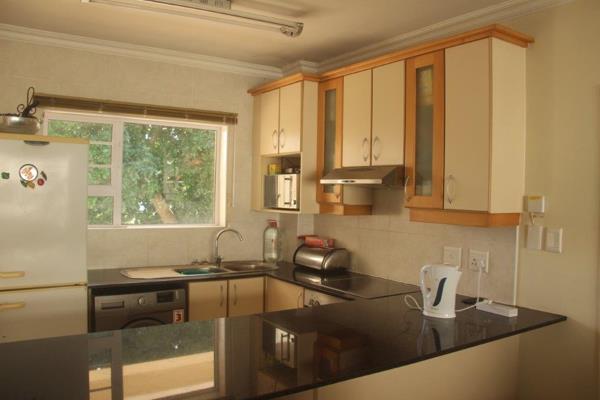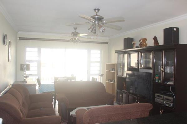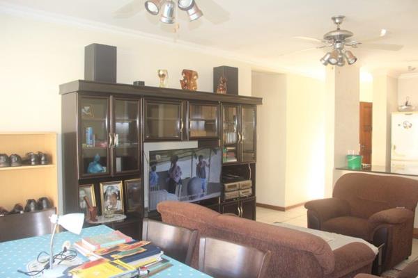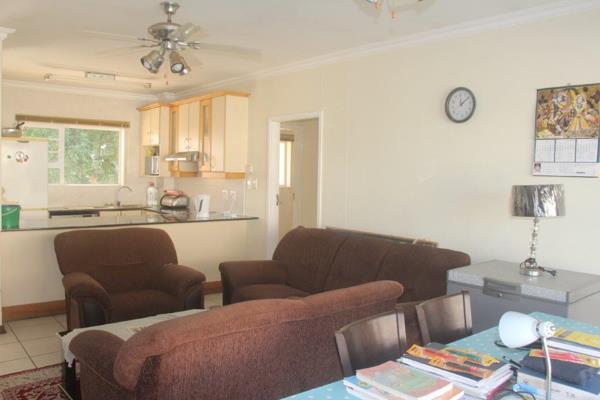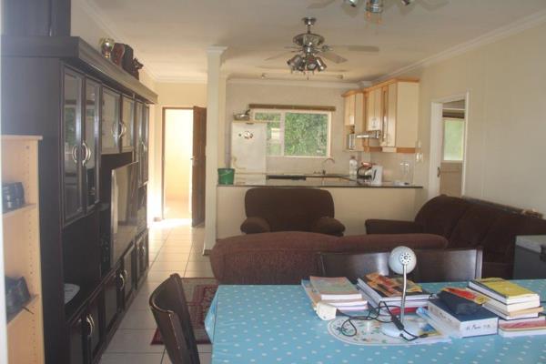 The spacious lounge opens out onto a covered balcony where you can relax and enjoy sundowners.