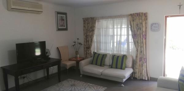 The backyard is a pristine oasis, adorned with an immaculate lawn and a separate bathroom featuring a bathtub, toilet, and washbasin. The open-plan lounge is flooded with natural light, while the dining room comfortably accommodates six for entertaining. The spacious, fully-tiled open-plan kitchen is equipped with a built-in hob/stove system.
