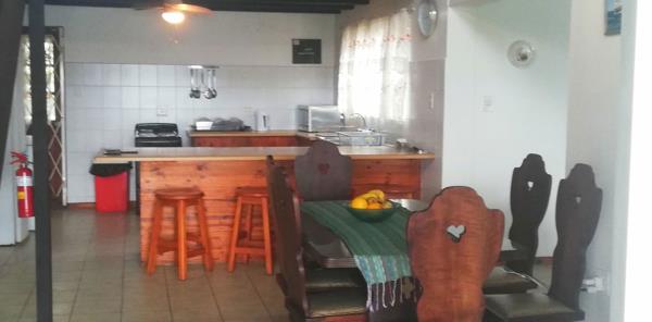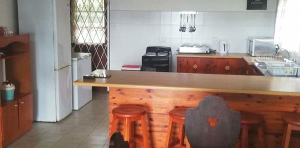 The house comes with 4 bedrooms with built in cupboards, ceiling fans and amazing seaviews from 2 of the rooms upstairs. The main bedroom has a door leading out into a covered balcony where you can relax and have a braai or simply take in the waves. There is parquet flooring that gives the house a rustic yet nostalgic feeling. There are 2 bathrooms with bath, shower, wash basin and toilet facilities and the kitchen is open plan with built in cupboards, a door leading to a courtyard and garden and being spacious. The kitchen offers a vast working space for your culinary instincts. There is a dining room and open plan lounge with a sliding door leading to the open well landscaped garden with more views of the ocean as well as a wooden deck for outside activity.