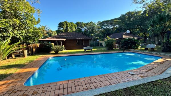 This unique, income-generating property is set on a spacious stand just 1.5km from a Blue Flag beach. Surrounded by natural bush and indigenous trees, it features 7 freestanding log cabins, a fishermans cottage, and a large swimming pool, offering tranquility and sea views.