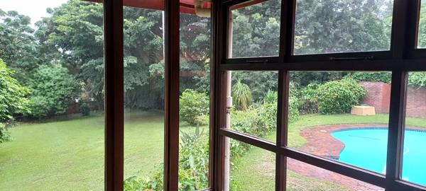 The main bedroom is en-suite and has a study that leads onto a patio that overlooks the swimming pool. There are two other bedrooms and bathroom shower and separate toilet. All the bedrooms have built in cupboards and are fitted with ceiling fans. The passage leading to the bedrooms also has built in cupboards so there is plenty of storage space. There is parquet flooring in the lounge, dining and bedrooms. The kitchen, sunroom and bathrooms are tiled.
