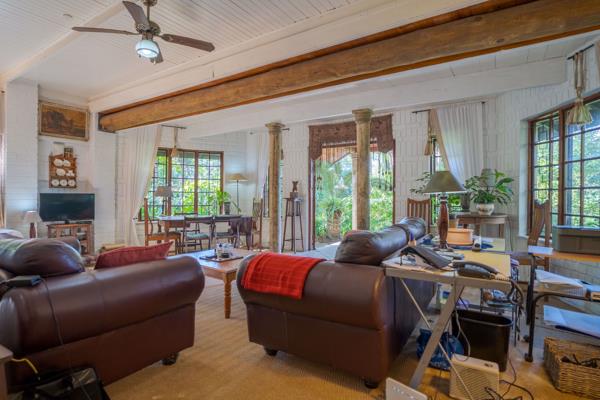 The kitchen with its bay windows and concrete tops, leads into the gallery and living area. Recreation at its finest and most decadent. Double volume ceilings with exposed beams create an ambience of regality.