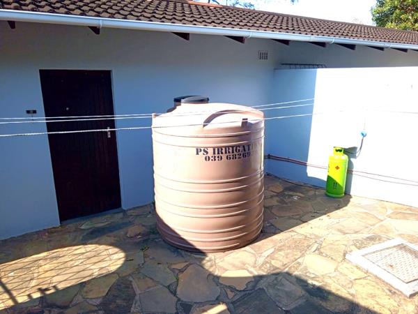 Situated in the sought-after suburb of Umtentweni on Frieda Lane, this elegant two-bedroom unit offers secure and stylish living in a well-maintained complex of only six homes. Accessed through automated gates, the property features a single lock-up garage leading into a private courtyard with a water tank, which connects directly to the kitchen. The kitchen is modern and well-appointed with ample built-in cupboards, sleek granite countertops, a gas hob, and an electric oven. The open-plan lounge and dining area flow effortlessly onto a private, fully enclosed garden that is pet-friendly for small breeds. The home further includes two generously sized bedrooms with built-in cupboards, a bathroom, and the convenience of a separate toilet.