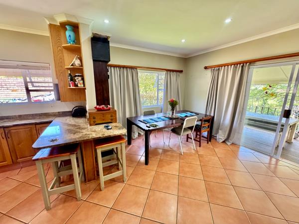 The living and dining spaces extend effortlessly to an undercover patio that overlooks the tranquil garden, offering an ideal setting for relaxation or entertaining. Additional features include double automated garages, a single carport, a top-of-the-range solar system, and a smart security system with phone-controlled surveillance cameras. At the edge of the picturesque garden lies a natural stream that attracts gentle wildlife such as duikers and porcupines, adding a touch of magic to the setting. This property is a hidden gem that perfectly balances elegance, sustainability, and serenity. Do not miss your chance to call it home as it will not stay on the market for long.