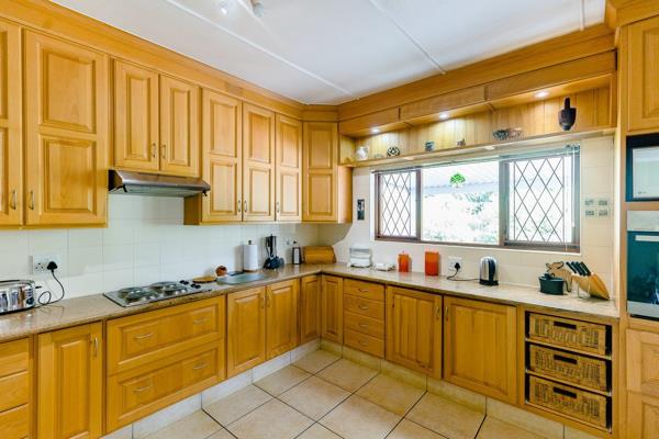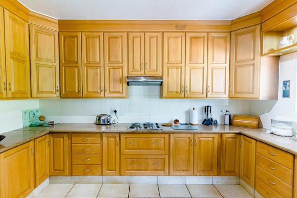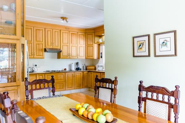 The spacious kitchen features beautiful granite countertops, eye-level oven, hob and oak cupboards with ample storage space as well as a scullery. The kitchen opens up to the dining room area as well as to a formal lounge that''s large in size and features a cozy fireplace and slight sea views, making it the perfect place to relax and unwind after a long day.