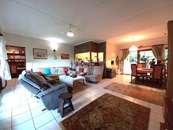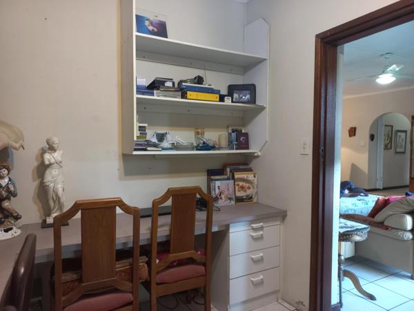 Situated in a quiet street and located in a peaceful suburb you find this lovely family home, featuring an open design lounge with a cosy office that looks out onto the front garden, a dining room and a neat kitchen fitted with tall cupboards and a scullery with a double sink and place to keep two appliances.