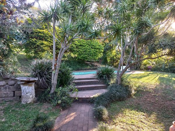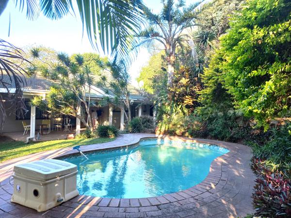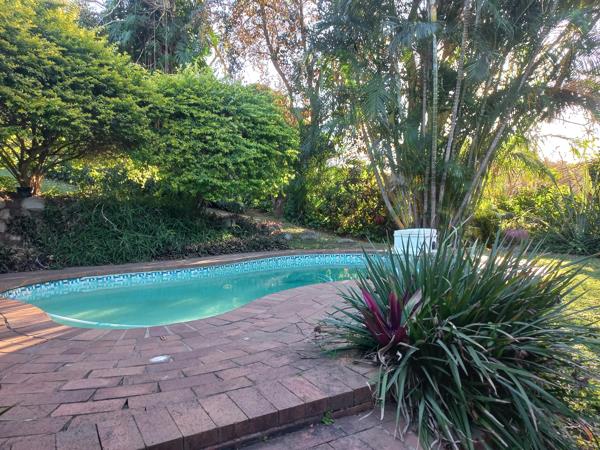 The pool area is an inviting spot with beautiful surrounding greenery and a covered patio where breakfast, lunch or dinner can be enjoyed or where guests can be entertained while the children splash around in the pool.
