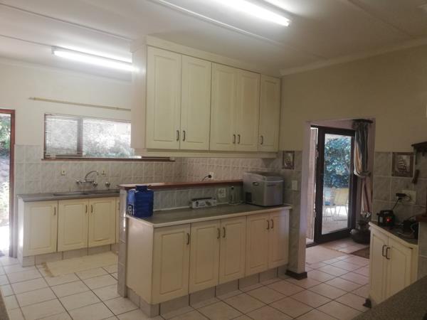 Double garages as well as lots of open parking area is available on the fully paved driveway. The house is alarmed and walled with trellidors and burglar bars with extra security features like solar street lights. A 5000litre tank as seen for water storage.