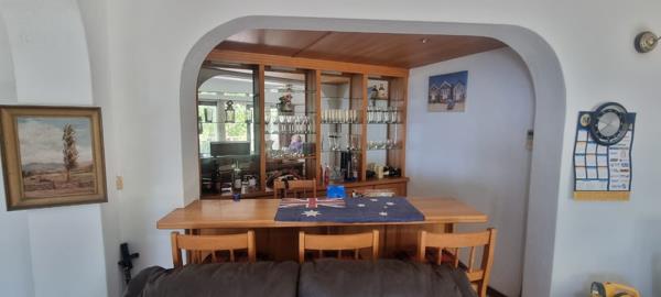 Step inside to discover an expansive open-plan layout comprising a lounge, bar, dining, and entertainment area seamlessly flowing onto a veranda with captivating sea vistas. Down the passage, three bedrooms, a study, and two bathrooms await, ensuring ample space for comfortable living. A separate, well-equipped kitchen leads to additional rooms and generous garage space, catering to diverse needs and lifestyles.