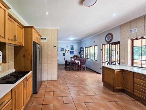 The main home boasts an impressive 4 bedrooms and 2 bathrooms, designed for comfortable and practical living. Step into a large open plan living area, with a lovely, large kitchen with ample cupboard space, hob and a double eye-level oven, complemented by a spacious scullery. The sunken lounge creates a cozy and inviting atmosphere, leading to a patio with a swimming pool.