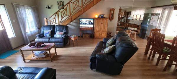 This property is equipped with modern energy-efficient features, including an 8 kW inverter, 10 kW batteries, and two 2200L water tanks connected to the house, plus additional water storage for the complex. The back patio is perfect for entertaining with a gas braai, basin, and a canvas cover for windy days. The home also has an alarm system with indoor and outdoor beams for added security. Also a built in braai if you love a little fire.