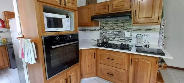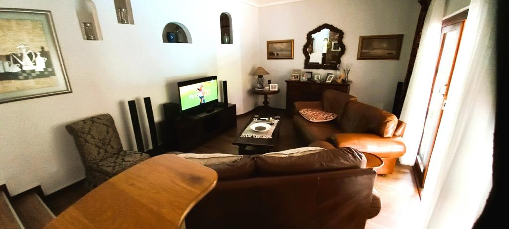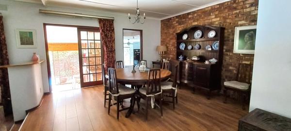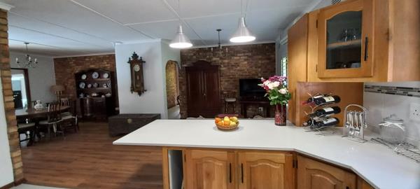 The spacious entrance hall in the main residence welcomes you into the home offering an open plan dining room, family lounge and a spanking new kitchen with Cesar stone tops, a 6-burner gas hob, a breakfast bar as well as a separate scullery. The second lounge is sunken, opening onto a massive covered patio with built in braai over looking the sparkling pool and beautiful garden.