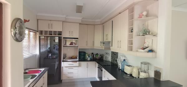 This stunning house is situated in a cul-de-sac in a quiet, leafy neighborhood. The house offers an open-plan lounge, dining room, and kitchen. The lounge walks out onto a large patio overlooking the garden. The kitchen has new cupboards, a hob, and an under-counter oven. There are also 3 spacious bedrooms and 2 bathrooms of which one is an en suite. The one bedroom further has a study adjacent to it. It can also be utilized as a baby''s room or a storeroom. You can also change it into a walking closet. The en-suite in the main bedroom has a beautiful corner bath and a shower. This bathroom is very spacious and has an extension that can be used as a make-up room.