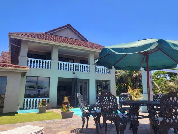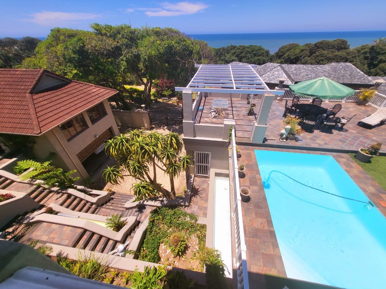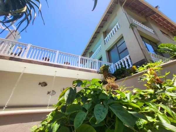 Above the one garages is the entertainment room, complete with pub, kitchen and bathroom, above the other is an open plan unit, with lounge, pub, kitchen, bathroom and bedroom area. From the courtyard, stairs split left and right and lead past 2 water features, to the main house. This consists of an open plan family room with stackers to the pool deck (with baby pool as well) and entertainment areas with ocean views. The family room opens to the dining area with the amazing, top class, custom built kitchen, with breakfast nook which opens to the side courtyard. The main formal lounge has Oregon floors and period fireplace, nice and cosy for the intimate winter evenings. There is a bedroom and bathroom on this level. A flight of stairs brings one to a further 3 guest bedrooms, all unique and character filled, then the main suite is amazing, with doors leading to private balcony, stunning solid wood and glass cupboard doors in the dressing area, followed by the unique, elegant bathroom.
