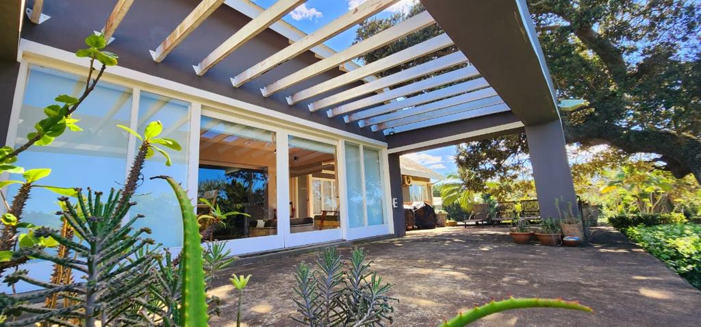 With some elegant features from the 60''s, combined with modern retro styling, makes this extra large home well worth considering, be it for holidays, permanent living, or even a company home, for all the management to enjoy. Situated on a large piece of land with direct beach access, this home consists of 4 large bedrooms, a Jack & Jill bathroom (2 rooms sharing) another family bathroom , then a flight of stairs lead to the large attic bedroom (can easily be divided into bedrooms or used as offices or hobby room) with bathroom. The living space has a lovely entrance hall, a separate kitchen and a large dining hall, plus a lounge (with exposed beams and fireplace) open plan to the bar room, with sliders opening to the patio area with braai and pergola feature. The bottom section of the home has the potential to form a guest cottage, with lounge, bedrooms, bathrooms, all one needs is a kitchen to complete the picture. There is a large swimming pool plus staff quarters (2 bedrooms, kitchen space and a bathroom (this could be converted into a cottage)