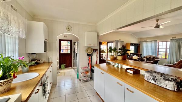 Enjoy open-plan living with a spacious lounge and dining area that flows into a functional kitchen. The covered patio with built-in braai is ideal for entertaining or relaxing in the coastal breeze.