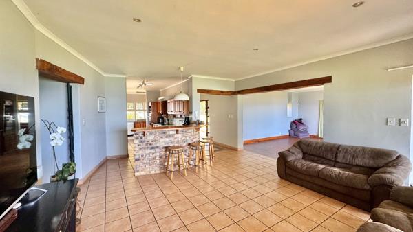 A passage leads to the bedroom wing. One of the rooms is fitted with built-in cupboards as well as a built-in work desk, making it ideal as a study or bedroom. The remaining three bedrooms are spacious, with the main bedroom offering incredible sea views, excellent cupboard space, and an en-suite bathroom. A full family bathroom and guest toilet serve the rest of the home.