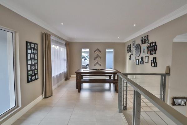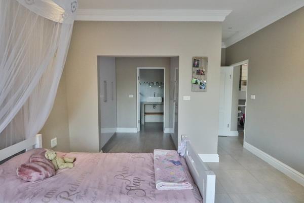 The house is part of a secure, upmarket complex, ensuring peace of mind with its double garage and two additional parking spaces. The complex itself is pet-friendly and features a pool and beautifully landscaped gardens, providing a serene outdoor environment for residents.