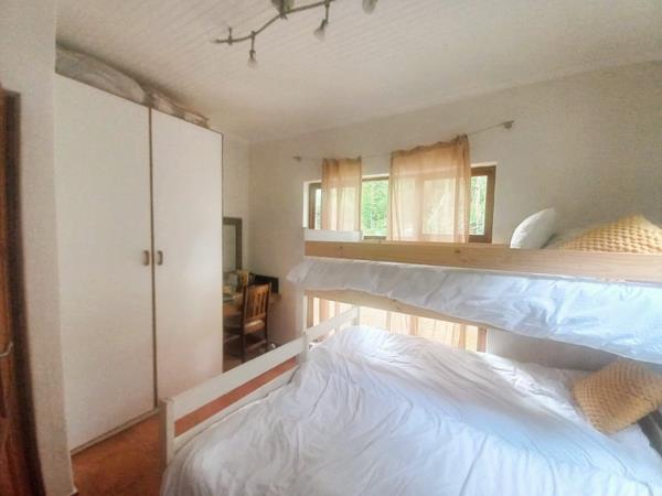 The highlight of this home is the spectacular deck, providing ample entertainment space and a built-in braai for delightful gatherings. Embracing a delightful nature-inspired vibe, this residence creates a serene atmosphere that seamlessly blends with the outdoor experience.