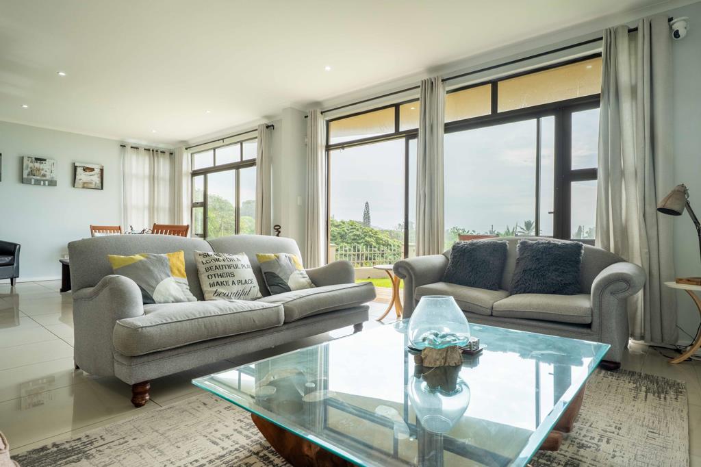 Nestled in the tranquil yet vibrant community of Clansthal, whether you are a growing family, a savvy investor, or looking for a serene retreat, this property ticks all the boxes for your ideal lifestyle. The ground floor features a modern, newly refurbished open-plan kitchen that seamlessly connects to the dining room, patio, and lounge. The bright and airy lounge boasts sliding doors that lead to the patio, offering breath-taking sea views .