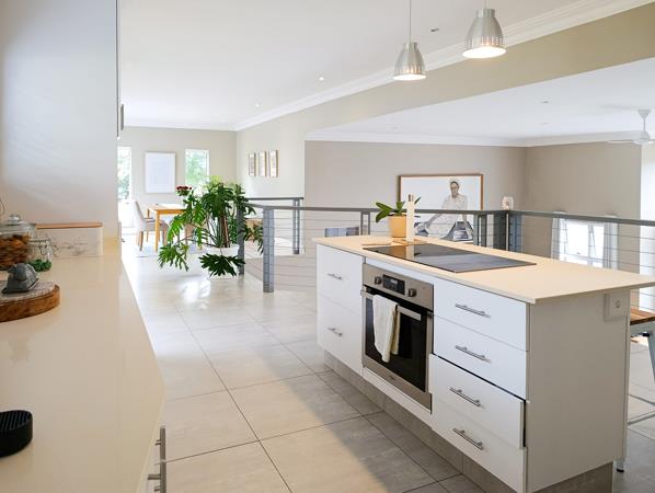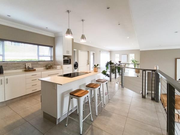 A few steps down, you''ll find an elegant dining area where you can enjoy meals with family and friends in a warm, inviting atmosphere. The spacious lounge area is located on the lower level and boasts large glass sliding doors that open out to the garden and pool, flooding the space with natural light and creating a seamless connection between indoor and outdoor living.